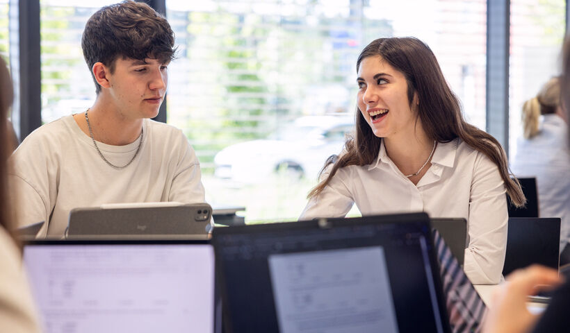 Kleine Gruppen, große Chancen: Unsere kleinen Gruppen ermöglichen individuelle Betreuung und intensiven Austausch. Du wirst nicht nur von Professor:innen, sondern auch von Deinen Kommiliton:innen lernen.